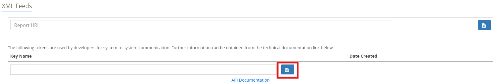 - A key is needed to generate an XML feed report, so: add a Key name and click on the blue button