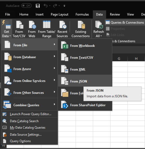 2. Import the file into excel
